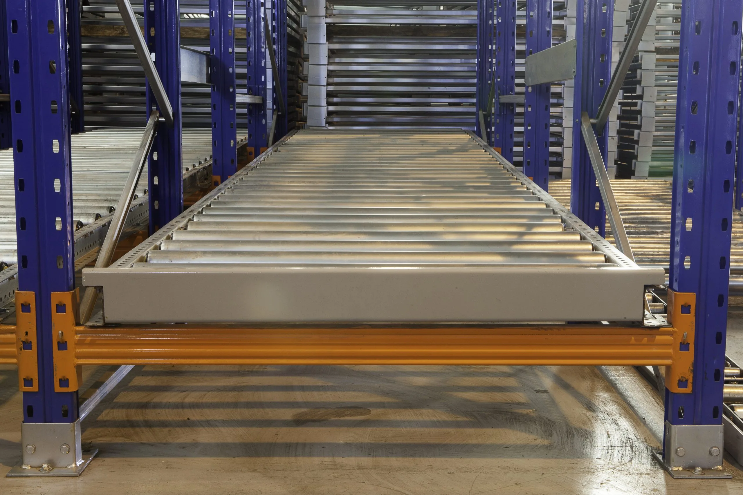 Baseado no modelo FIFO (first-in, first-out) de gestão de estoque, no qual o primeiro produto armazenado é o primeiro a ser retirado da estrutura, o sistema Dinâmico é especialmente indicado para o armazenamento de produtos perecíveis ou com alto fluxo de movimentação, como em armazéns intermediários e áreas de expedição que exigem agilidade nas operações.